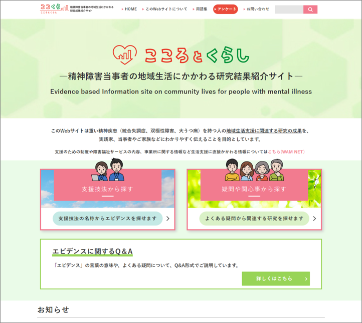 エビデンス情報サイト「こころとくらし」の作成